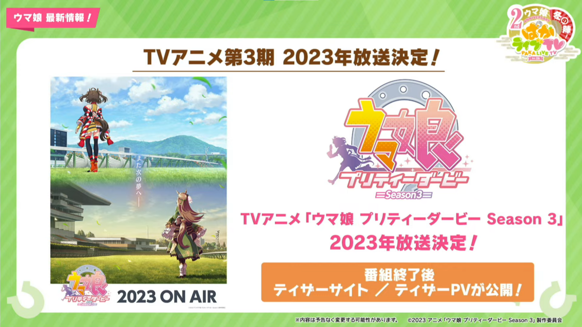 — TVアニメ『ウマ娘 プリティーダービー Season 3』 (@uma_musu_anime) 2023年2月22日