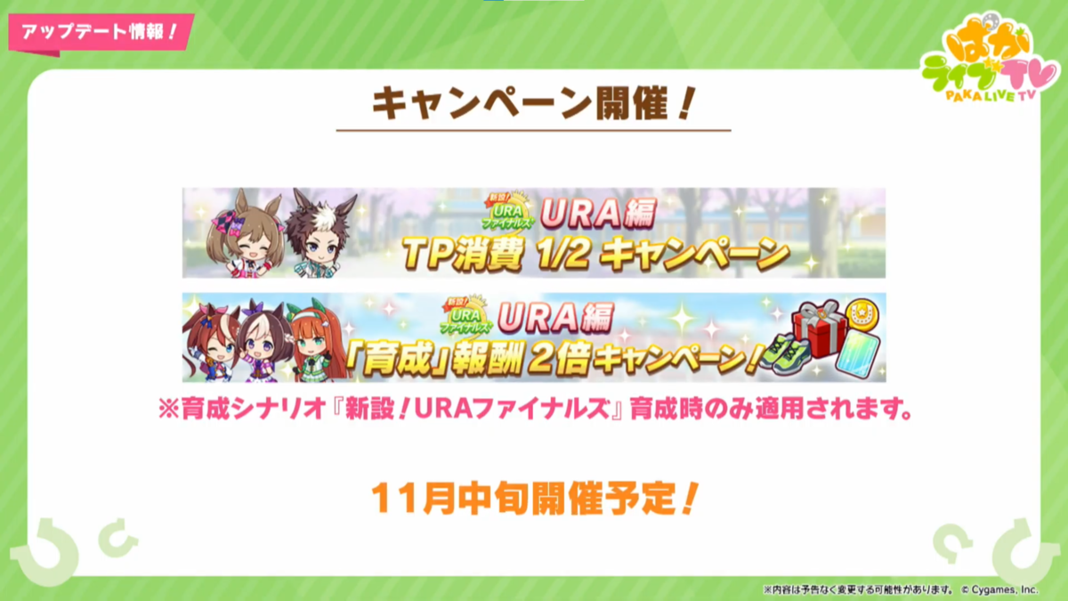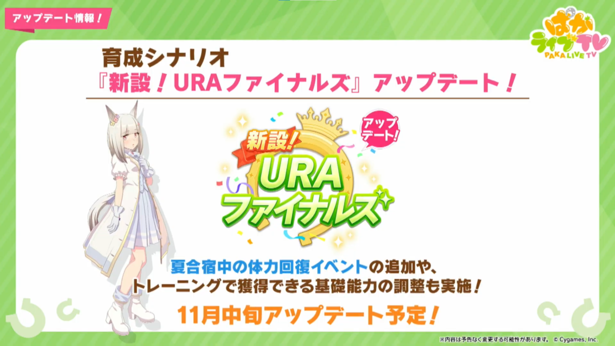 - 育成シナリオ『新設!URAファイナルズ』アップデート!