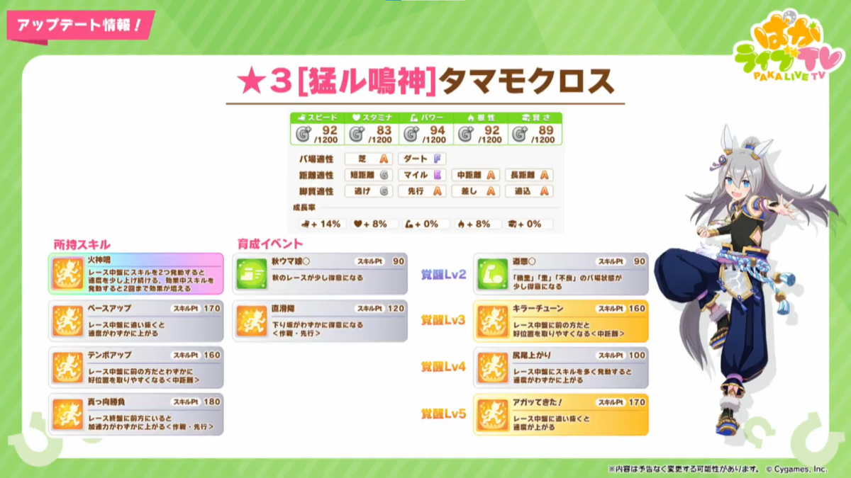 勝利すると、基礎能力に加え新スキル『レースの真髄』のヒントを獲得できます!