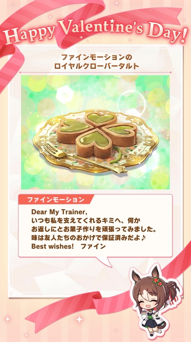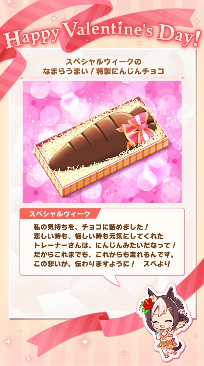 本日はバレンタインデーということでウマ娘からバレンタインチョコのプレンゼントがあります!